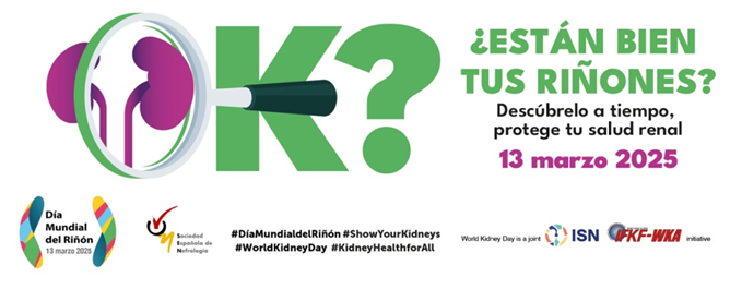 El Día Mundial del Riñón se celebra este año bajo el lema “¿Están bien tus riñones? Descúbrelo a tiempo protege tu salud renal”, e incide en aspectos como la prevención, la detección precoz, el infradiagnóstico, el aumento de la incidencia y prevalencia de la ERC o la necesidad de cuidar la salud renal y fomentar hábitos de vida saludable para reducir sus riegos y su progresión.