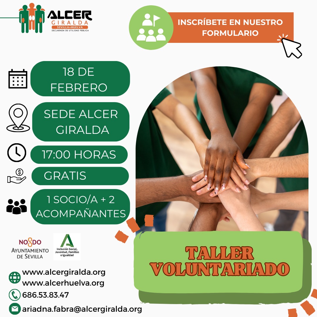 ¿Eres voluntario o voluntaria de ALCER? ¿Te gustaría serlo? ¿No conoces que hacen los voluntarios/as de ALCER? Vente a este taller. Tomaremos café juntos/as, y te responderemos todas las preguntas ...