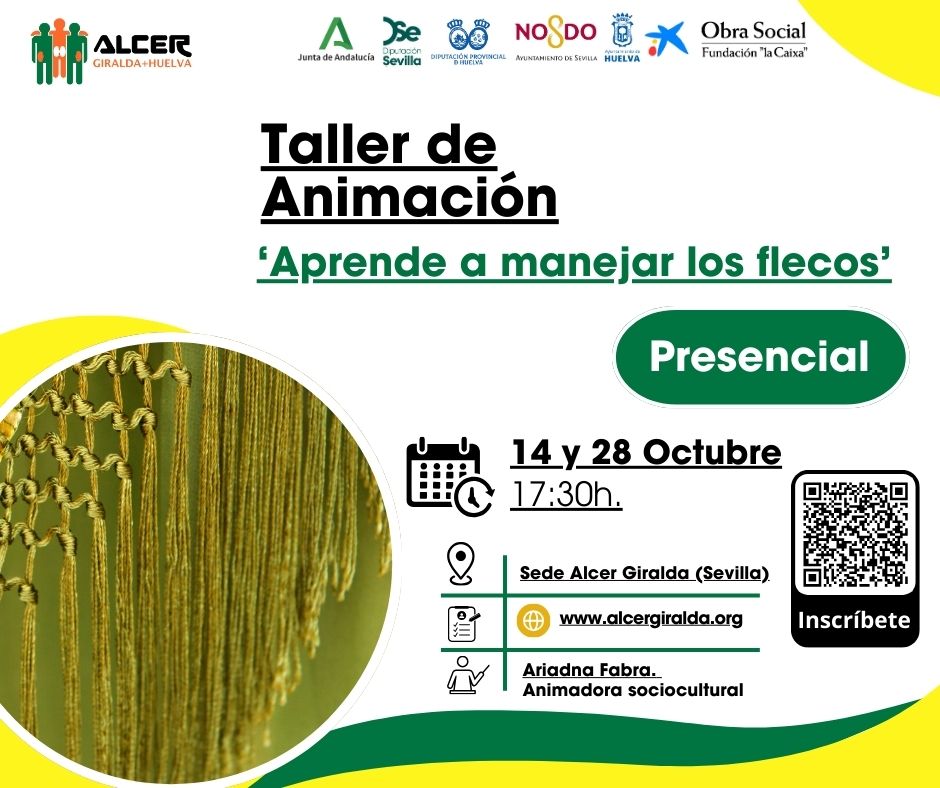 🧵✨ ¡Damos puntada con arte! Los días 14 y 28 de octubre a las 17:30h te esperamos en nuestra sede de Sevilla con el taller “Aprende a manejar los flecos”, ...